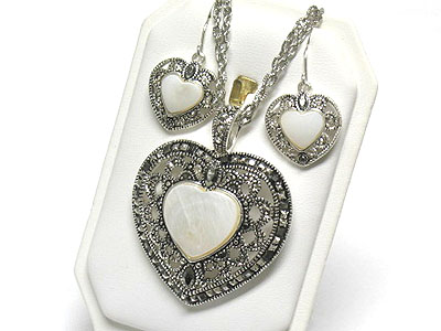 WHOLESALE MARCASITE LOOK HEART PENDANT NECKALCE AND EARRING SET 340903