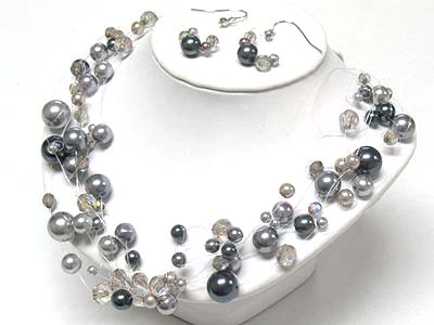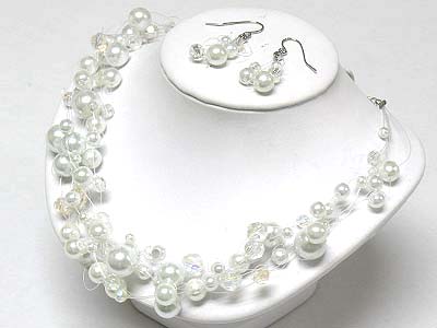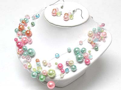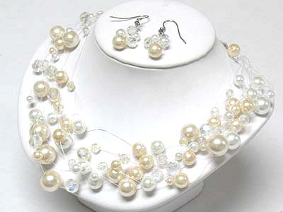 Multi strand pearl beads illusion neckalce and earring set