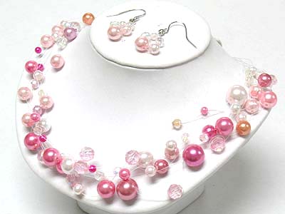 WHOLESALE MULTI STRAND PEARL BEADS ILLUSION NECKALCE AND EARRING SET 341001