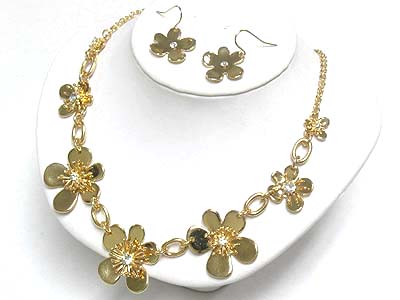 WHOLESALE CRYSTAL STUD METAL FLOWER LINK NECKLACE AND EARRING SET 341060