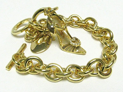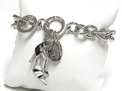 Tutti frutti metal epoxy hige heel shoe charm toggle bracelet