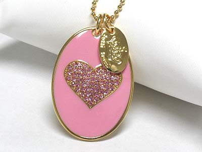 WHOLESALE TUTTI FRUTTI CRYSTAL HEART AND METAL EPOXY OVAL DISK PENDANT NECKLACE 341102