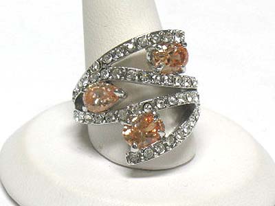 WHOLESALE TRIPLE CUBIC ZIRCONIA AND CRYSTAL DECO WIDE RING 341166