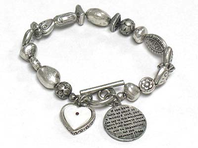 WHOLESALE BIBLE THEME REAL MUSTARD SEED HEART CHARM METAL STRETCH BRACELET 341274