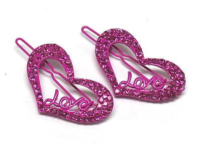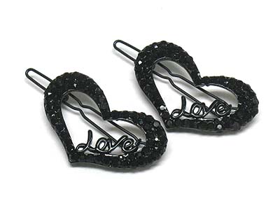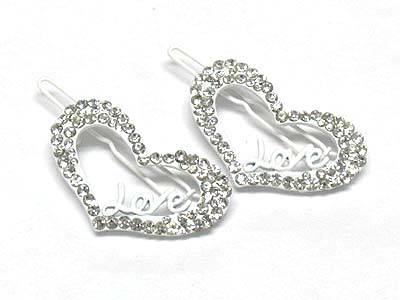 WHOLESALE CRYSTAL STUD LOVE HEART HAIR PIN - 2 PC SET 341422