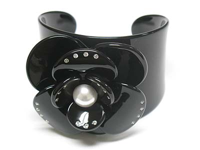 Crystal stud acryl flower cuff bangle