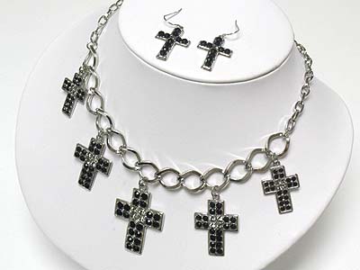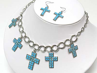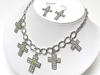 Five crystal cross pendant dangle necklae and earring set