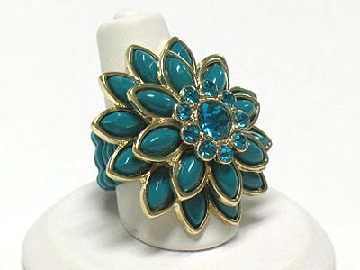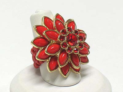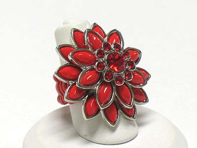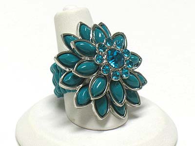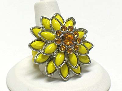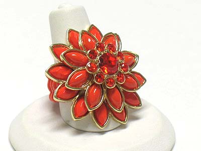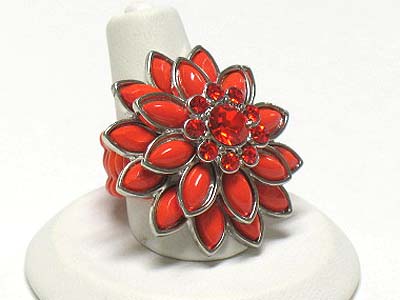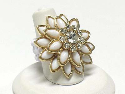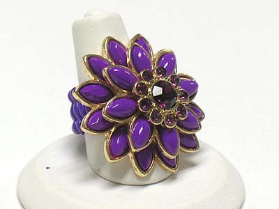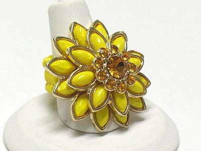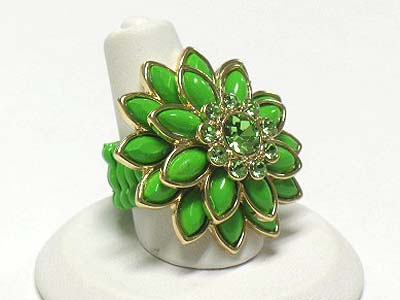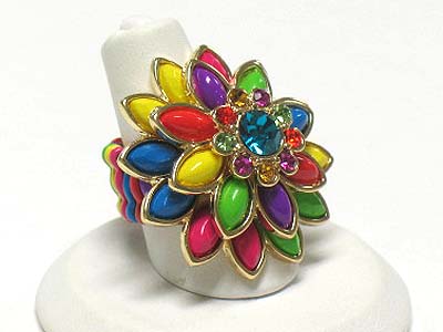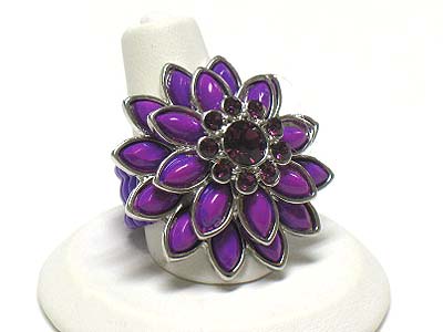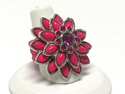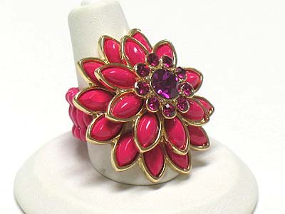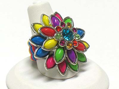 WHOLESALE CRYSTAL AND ACRYL PETAL FLOWER STRETCH RING 341824