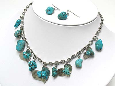 Natural stone and metal heart dangle neckalce and earring set