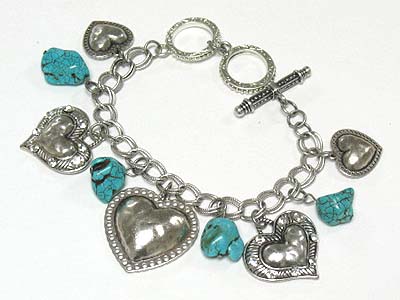 WHOLESALE NATURAL STONE AND METAL HEART CHARM DANGLE TOGGLE BRACELET 341882