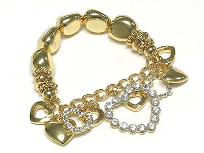 Crystal and metal heart dangle stretch bracelet