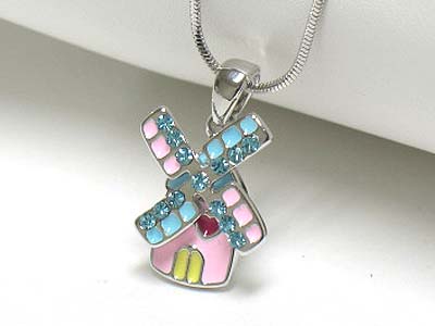 WHOLESALE MADE IN KOREA WHITEGOLD PLATING CRYSTAL AND EPOXY WINDMILL PENDANT NECKLACE 341912