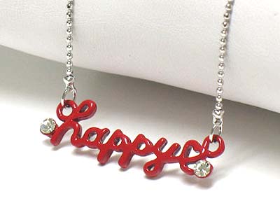 Enameled metal crystal stud happy necklae