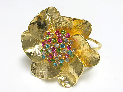 WHOLESALE EXTRA LARGE CRYSTAL ACCENT METAL FLOWER HINGE BANGLE 342157