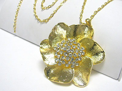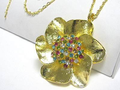 WHOLESALE EXTRA LARGE CRYSTAL ACCENT METAL FLOWER PENDANT NECKLACE 342159