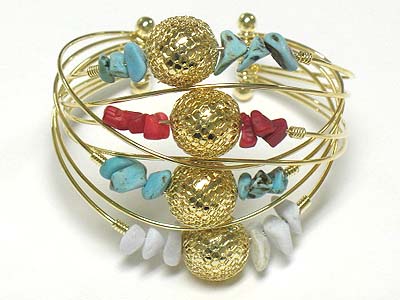 Metal ball and natural chip stone metal bangle
