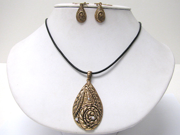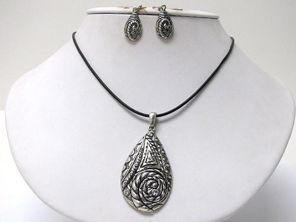 WHOLESALE TRI TONE METAL ART PENDANT CORD NECKLAE AND EARRING SET 342318