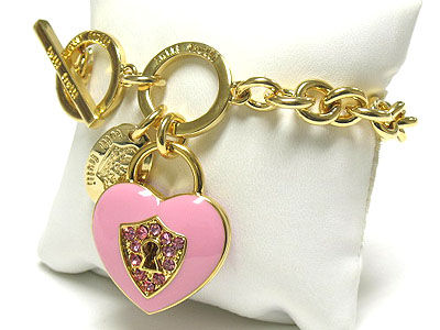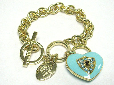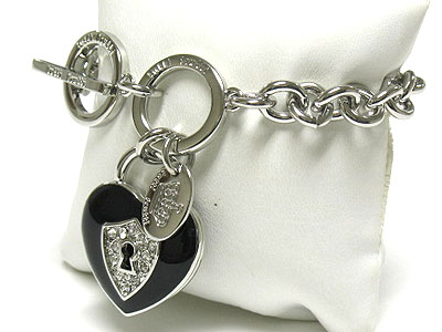 WHOLESALE TUTTI FRUTTI EPOXY AND CRYSTAL HEART LOCK CHARM TOGGLE BRACELET 342329