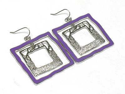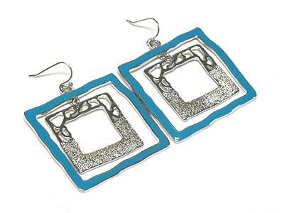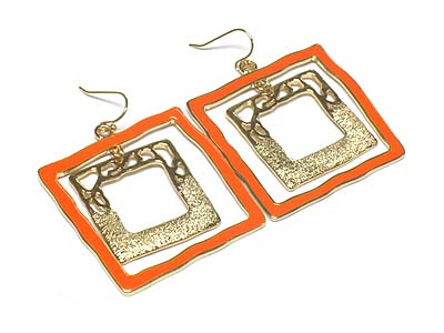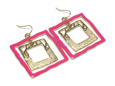 WHOLESALE ENAMEL METAL DUAL SQUARE EARRING 342755