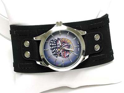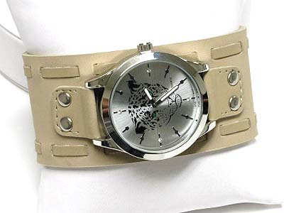 WHOLESALE DESIGNER INSPIRED TATTOO PICTURE WIDE LEATHER BAND WATCH 342823