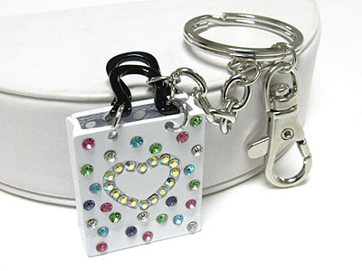 WHOLESALE CRYSTAL HEART STUD ENAMEL METAL SHOPPING BAG KEY CHARM 342859