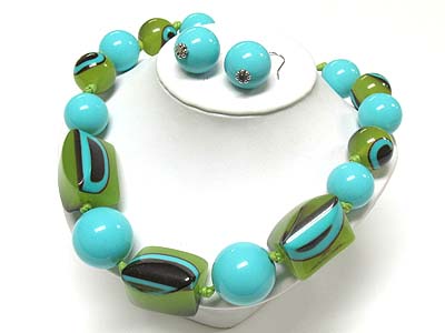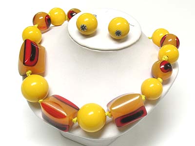 WHOLESALE ENAMELED ACRYL BALL LINK NECKALCE AND EARRING SET 343033