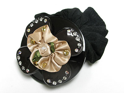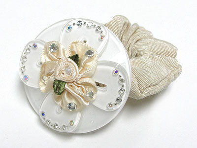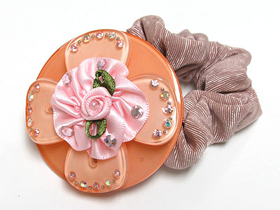 WHOLESALE CRYSTAL STUD FLOWER DECO ACRYL ROUND PONY TAIL HOLDER 343139