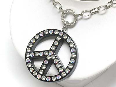 WHOLESALE CRYSTAL STUD LARGE ACRYL PEACE MARK PENDANT NECKLACE 343202