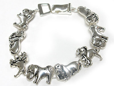 WHOLESALE METAL EPOXY DOG THEME CHARM LINK MAGNETIC CLASP BRACELET 343263