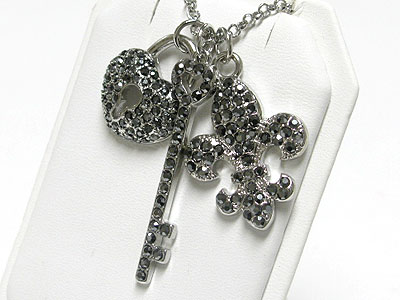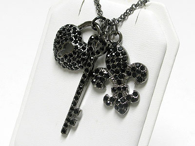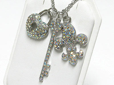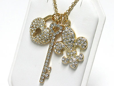 WHOLESALE CRYSTAL KEY LOCK FLEUR DE LIS PENDANT LONG NECKLACE 343371
