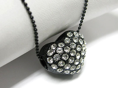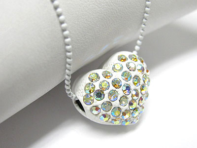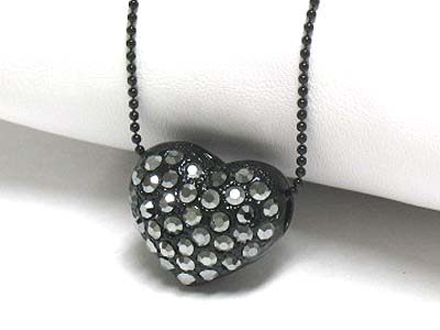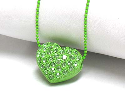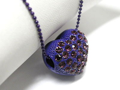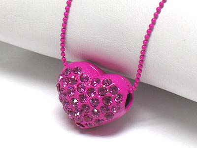 WHOLESALE SPECIAL PRICE - CRYSTAL STUD ENAMEL METAL PUFFY HEART NECKLACE 343393
