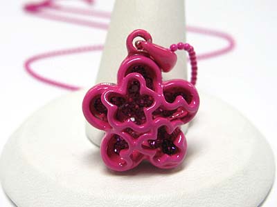 WHOLESALE SPECIAL PRICE - CRYSTAL INSIDE ENAMEL METAL FLOWER PENDANT NECKLACE 343575