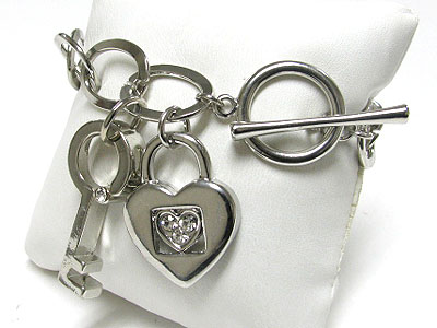 WHOLESALE METAL THIICK KEY AND LIOCK CHARM AND ROUND CHAIN TOGGLE BRACELET 343707