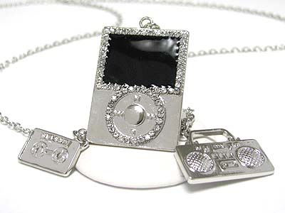 WHOLESALE MUSIC THEME MP3 PLAYER JUKEBOX AND CASSETTE TAPE PENDANT LONG NECKLACE 343752