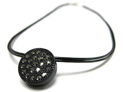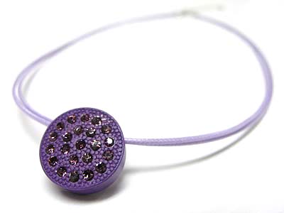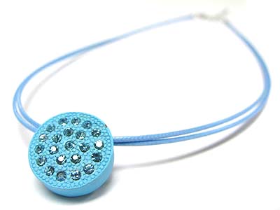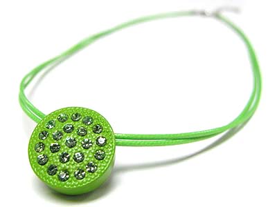 Crystal stud enamel metal round pendant cord necklace