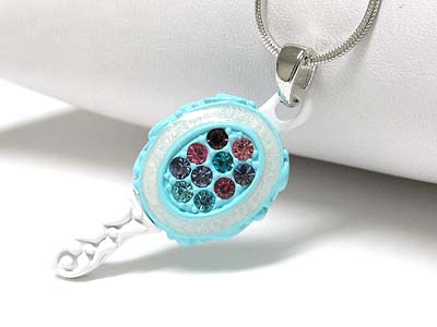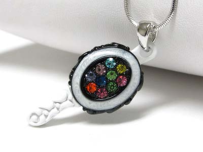 WHOLESALE MADE IN KOREA WHITEGOLD PLATING CRYSTAL METAL EPOXY MINIATURE HAND MIRROR PENDANT NECKLACE 343908