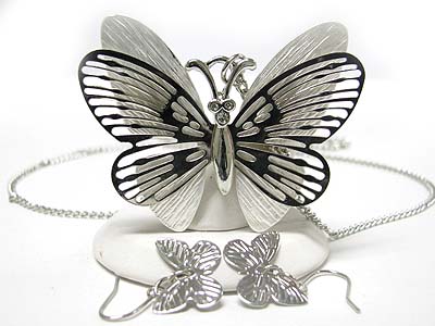 WHOLESALE METAL FILIGREE BUTTERFLY PENDANT NECKLACE EARRING SET 344240