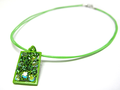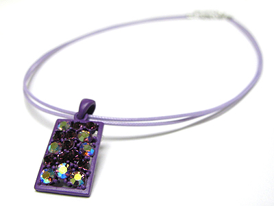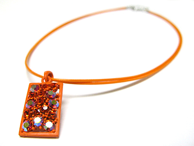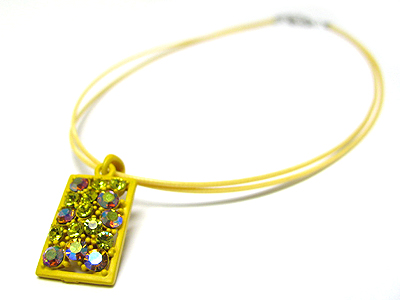 Crystal and enamel metal pendant cord necklace