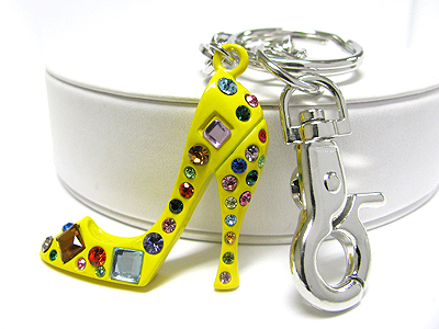 Crystal stud enamel metal high heel key chain charm