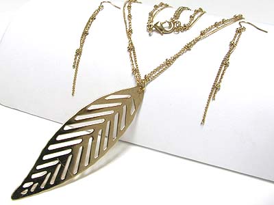 WHOLESALE METAL FILIGREE FEATHER PENDANT LONG NECKLACE EARRING SET 344470
