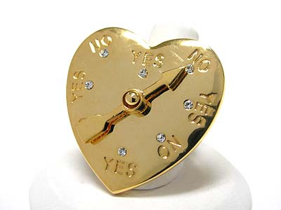 Tutti frutti crystal stud yes no clock heart adjustable size ring
