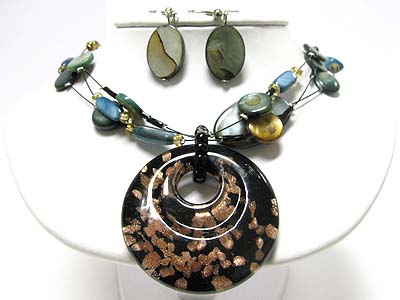 WHOLESALE ROUND MURANO GLASS PENDANT SEA SHELL NECKLACE EARRING SET 344538