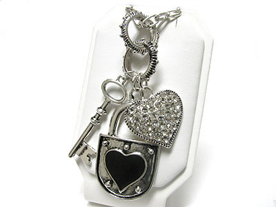 WHOLESALE KEY LOCK AND CRYSTAL HEART CHARM DANGLE LONG NECKLACE 344615