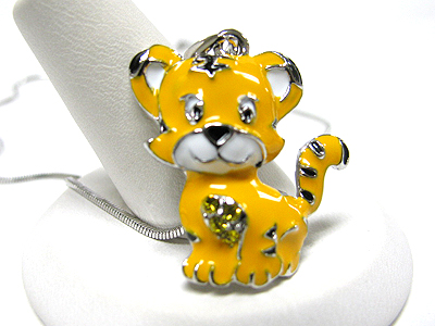 WHOLESALE MADE IN KOREA WHITEGOLD PLATING CRYSTAL AND EPOXY LITTLE LION PENDANT NECKLACE 344681