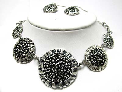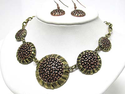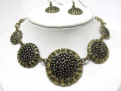WHOLESALE BURNISH FILIGREE METAL ROPUND DISK LINK NECKLACE EARRING SET 344718