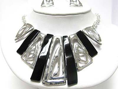 WHOLESALE ETHNIC STYLE REGIN AND METAL BAR HANGING DROP NECKLACE EARRING SET 344722