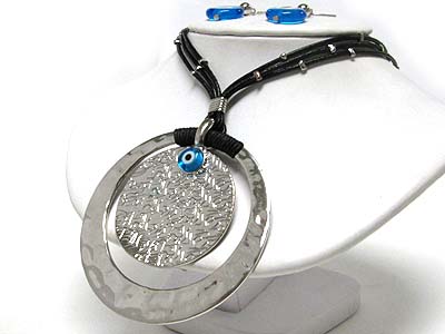 WHOLESALE LARGE ROUND PENDANT MULTI CORD NECKLACE EARRING SET - EVIL EYE 344859