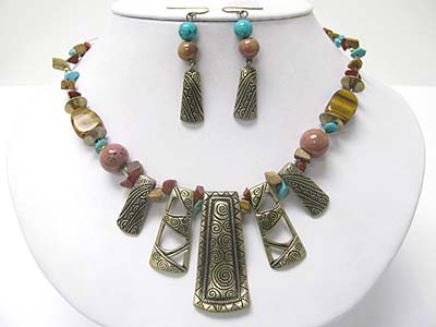 Designer style casting metal bar necklace set