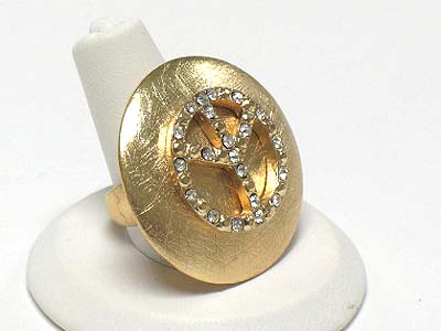 WHOLESALE CRYSTAL PEACE SCRATCH METAL ADJUSTABLE SIZE RING - BRASS METAL 344956