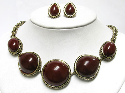 Round ceramic marble stone metal casting necklace earring set